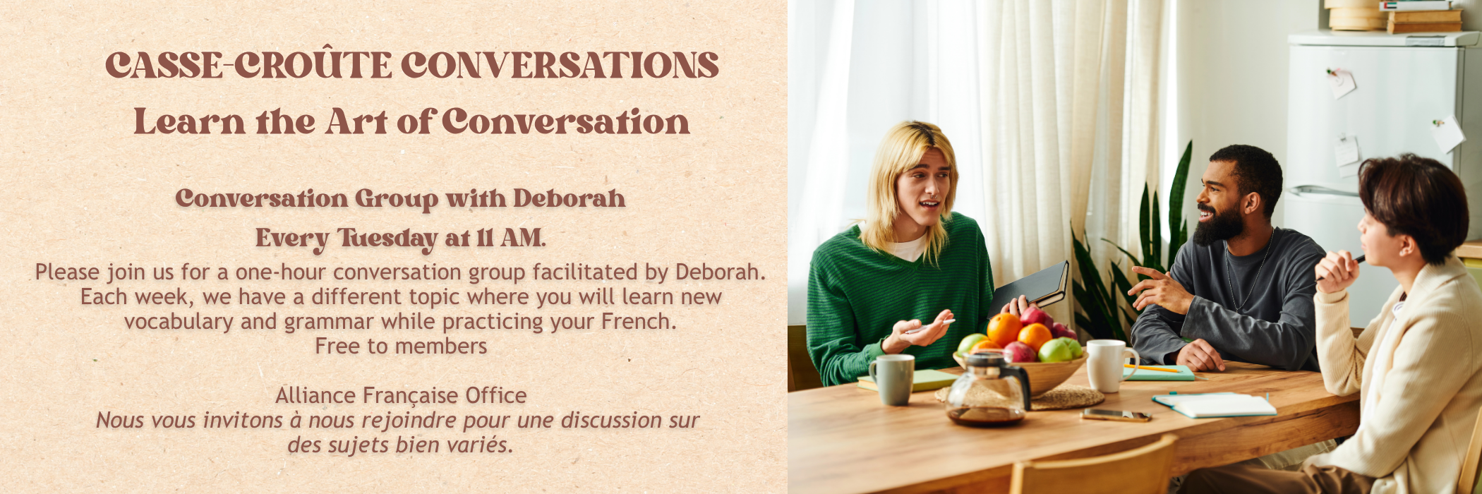 Welcome to the non-profit Alliance Française de Sarasota, a French language center and cultural community open to all—where Sarasota comes together to celebrate the French language and culture. Become an official part of our vibrant Francophile community today!
